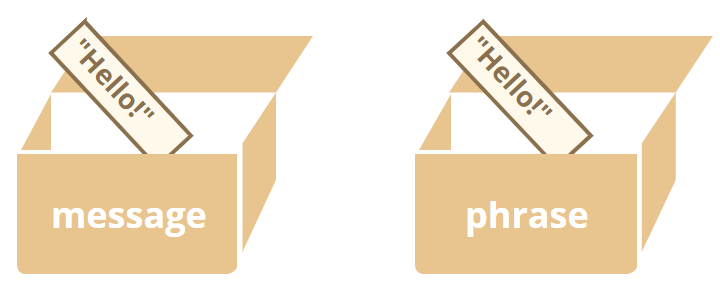 let phrase = message;В результате мы имеем две независимые переменные, каждая из которых хранит строку "Hello!".