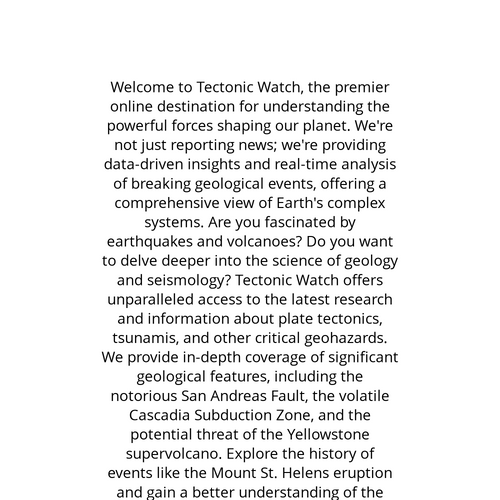 Website: https://www.youtube.com/@TectonicWatch. Welcome to Tectonic Watch, the premier online destination for understanding the powerful forces shaping our planet. We're not just reporting news; we're providing data-driven insights and real-time ana