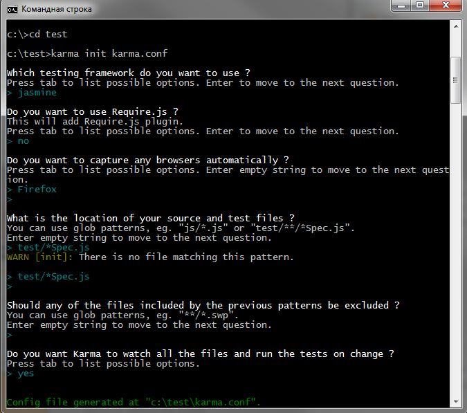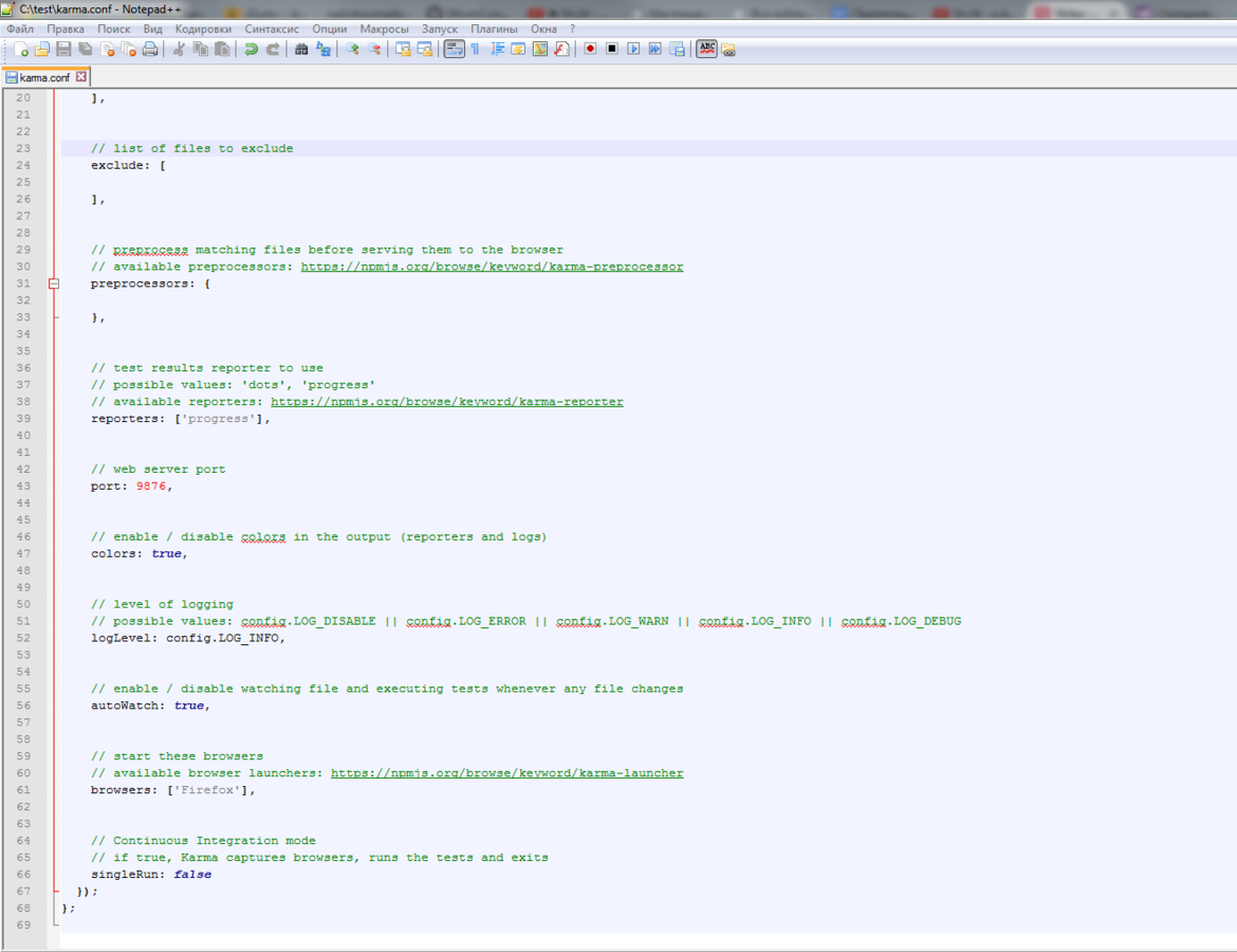 Устанавливаем Karma
