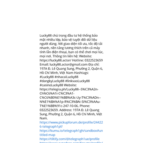 Website: https://telegra.ph/Lucky88--S%C3%A2n-Ch%C6%A1i-C%C3%A1-C%C6%B0%E1%BB%A3c-Uy-T%C3%ADn--N%E1%BA%A1p-R%C3%BAt-Si%C3%AAu-T%E1%BB%91c-247-10-06. Lucky88 chú trọng đầu tư hệ thống bảo mật nhiều lớp, bảo vệ tuyệt đối dữ liệu người dùng. Với giao di