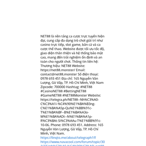 Website: https://telegra.ph/NET88--Nh%C3%A0-C%C3%A1i-%C4%90%E1%BA%B3ng-C%E1%BA%A5p-Qu%E1%BB%91c-T%E1%BA%BF--B%E1%BA%A3o-M%E1%BA%ADt--N%E1%BA%A1p-R%C3%BAt-Si%C3%AAu-T%E1%BB%91c-10-06https://telegra.ph/NET88--Nh%C3%A0-C%C3%A1i-%C4%90%E1%BA%B3ng-C%E1%BA%A5p-Qu%E1%BB%91c-T%E1%BA%BF--B%E1%BA%A3o-M%E1%BA%ADt--N%E1%BA%A1p-R%C3%BAt-Si%C3%AAu-T%E1%BB%91c-10-06 NET88 là nền tảng ca cược trực tuyến hiện đại, cung cấp đa dạng trò