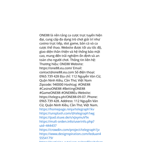 Website: https://telegra.ph/ONE88-09-07. ONE88 là nền tảng ca cược trực tuyến hiện đại, cung cấp đa dạng trò chơi giải trí như casino trực tiếp, slot game, bắn cá và ca cược thể thao. Website được tối ưu tốc độ, giao diện thân thiện và hệ thống bảo m