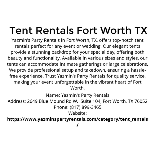 https://www.yazminspartyrentals.com/category/tent_rentals/ Yazmin's Party Rentals in Fort Worth, TX, offers top-notch tent rentals perfect for any event or wedding.