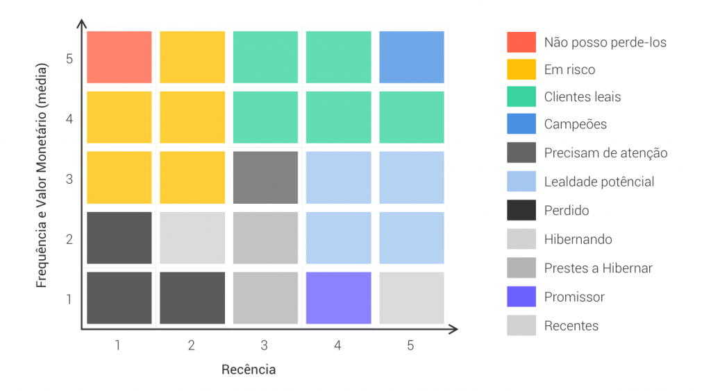 - Classificar os clientes em até 11 categorias, dependendo do quão recentemente eles fizeram uma compra, com que frequência compram e o tamanho de suas compras.