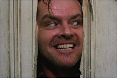 In thriller films, the typical shots used are close up, extreme close up and mid shots/medium close ups. Close ups are and extreme close ups are used to give most attention to the main characters or an object, to exaggerate the situation shown. As you can see, the close up from the well-known film ‘The Shining’, is used to express the characters emotional state and hyperbole it to increase tension in a scene, this shot expresses his insanity through his unusual and disturbing facial expression that is shown in utmost detail by the close range shot.