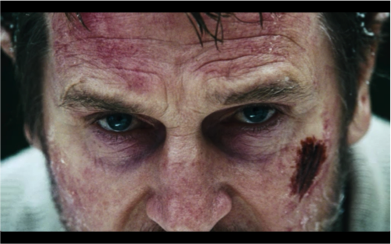 Extreme close ups, such as the one on the right from the film ‘The Grey’, show’s clearly the emotional state of the character; by viewing directly to the area of the eyes, we can tell that this character is angry and frustrated. Extreme close ups such as this are typical in a thriller as the framing is also manipulated to block out any other area, keeping it quite close and maybe a little bit uncomfortable, this is done to again increase tension further and also to increase suspense as the audience are put in a situation of the unknown; the audience are lead to be unwary of the upcoming danger, therefore allowing the use of jumps to keep the audience ‘thrilled’. This influenced us to use these conventions of close framed shots to increase suspense and tension as it exaggerates emotion, so we manipulated this to provide close ups on the innocent victim to exaggerate and emphasise the struggle.