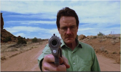Mid shots and medium close ups are used just to present certain key information to the viewers, this shot on the right, provides the information that this man may be capable of bad things such as murder due to we are provided with the prop of a gun, that is shown clearly, coupled by a slight viewing of his facial expression which in all looks quite serious, overall allowing the audience to gain a feel that this character may be bad and dangerous.