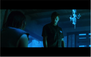 Clothing of the character is chosen wisely in thrillers too, in most cases the protagonist wears bright clothing to represent good whereas the antagonist would wear darker clothing to represent death and hopelessness. As you can see from the film ‘Home front’ the type of costume distinguishes clearly on who is the protagonist and who is the antagonist; the bright clothing worn by the two individuals in the first shot expresses their good will, whereas in the shot below, the dark and dull costume worn hints that this person is parallel to the colour of his clothing – dark and unhappy, giving connotations of death. We used the typical colour choice for our innnocent victim of wearing white to connote his innocence, while we used black clothing for the murderer to connote death. The lighting in thrillers is mostly dark and low key which lacks in vibrancy, all to give no expressions of hope within the film, keeping and maintaining the hopeless atmosphere to keep tension throughout. The main characters set out in a thriller are protagonists, antagonists and innocent victims – depending on the sub-genre of the thriller, these can be different each time, for an example, in crime thrillers, the protagonist could be a detective/police enforcement, the antagonist could be a murderer or a prisoner.