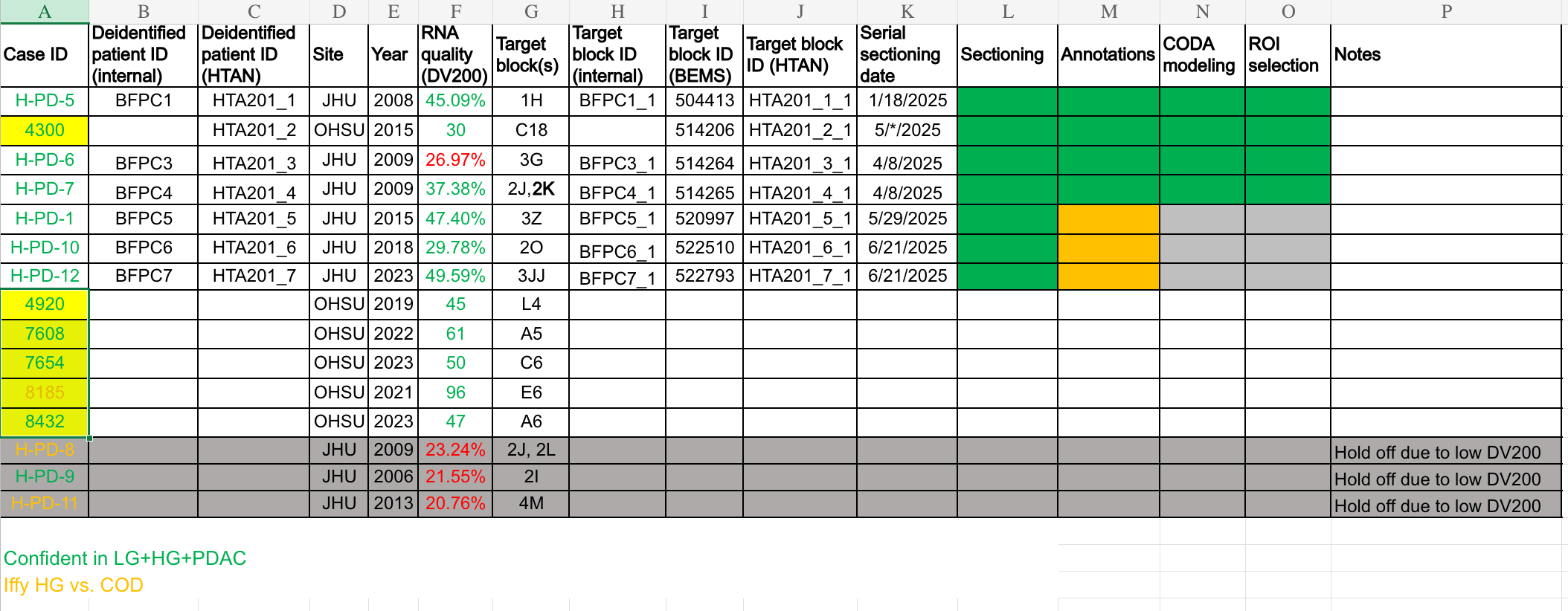 Which specimens in a pancreatic cancer cohort have an EGFR mutation status?
