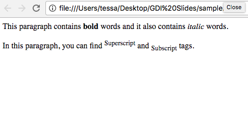 <sub>Subscript</sub> tags.</p>White Space doesn't