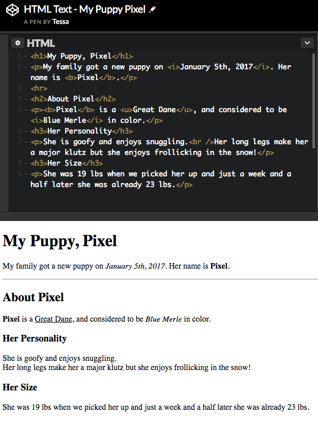 Add each of these styles to your HTML in index.html file within "New Site" folder.