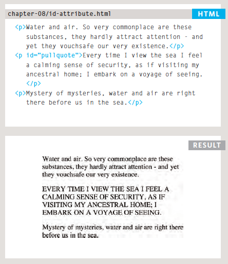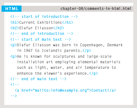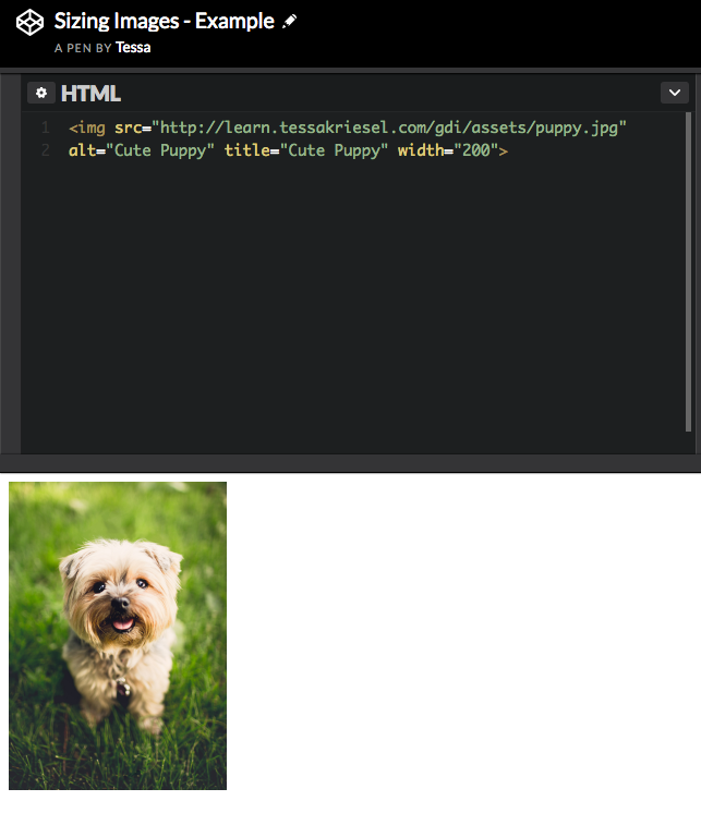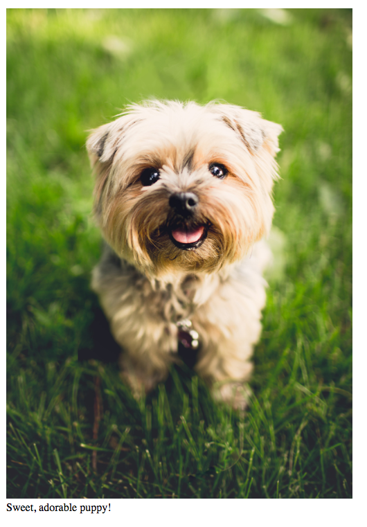 HTML for the image on the right is written below. Notice the pink showing the HTML elements breaking up the content.
