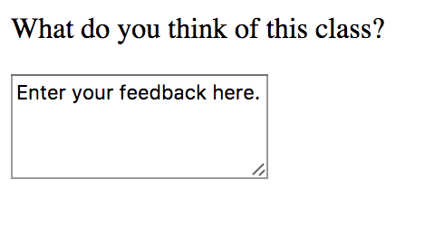 <textarea name="opinion" cols="20" rows="4">Enter your feedback here.</textarea>