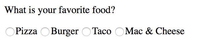 <input type="radio" name="fave" value="maccheese" />Mac & Cheese