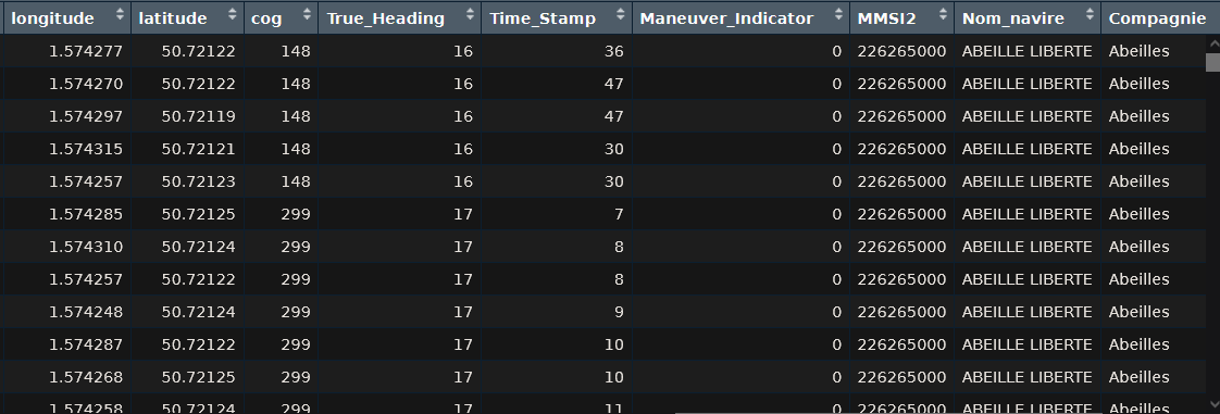 - Ces données brutes sont les données AIS (Automatic Identification System)