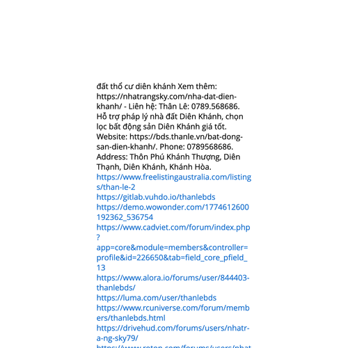 Website: https://bds.thanle.vn/bat-dong-san-dien-khanh/https://bds.thanle.vn/bat-dong-san-dien-khanh/ bán đất thổ cư diên khánh Xem thêm: https://nhatrangsky.com/nha-dat-dien-khanh/ - Liên hệ: Thân Lê: 0789.568686. Hỗ trợ pháp lý nhà đất Diên Khánh, chọn lọc bất động sản Diên Khánh giá tốt.