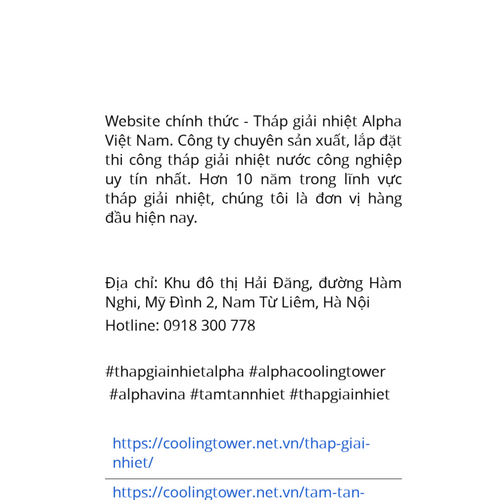 Website chính thức - Tháp giải nhiệt Alpha Việt Nam. Công ty chuyên sản xuất, lắp đặt thi công tháp giải nhiệt nước công nghiệp uy tín nhất. 0918 300 778 #thapgiainhietalpha #alphacoolingtower https://coolingtower.net.vn/