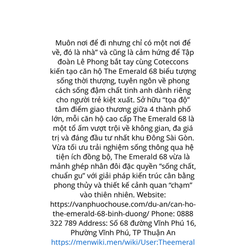 Website: https://vanphuochouse.com/du-an/can-ho-the-emerald-68-binh-duong/ Muôn nơi để đi nhưng chỉ có một nơi để về, đó là nhà” và cũng là cảm hứng để Tập đoàn Lê Phong bắt tay cùng Coteccons kiến tạo căn hộ The Emerald 68 biểu tượng sống thời thượn