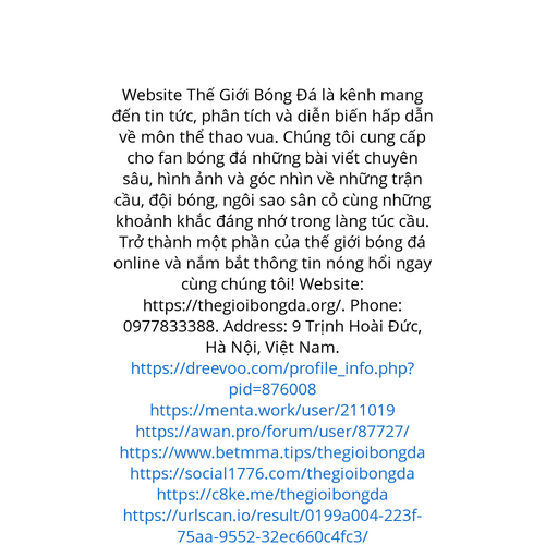 Website: https://thegioibongda.org/. Thế Giới Bóng Đá là địa chỉ chia sẻ tin tức, đánh giá và diễn biến nóng hổi về bóng đá. Chúng tôi mang đến cho fan bóng đá các phân tích chi tiết, video và bình luận về giải bóng lớn nhỏ, câu lạc bộ, cầu thủ cùng