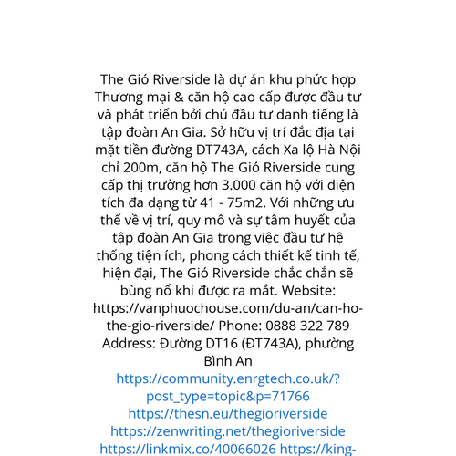 Website: https://vanphuochouse.com/du-an/can-ho-the-gio-riverside/ The Gió Riverside là dự án khu phức hợp Thương mại & căn hộ cao cấp được đầu tư và phát triển bởi chủ đầu tư danh tiếng là tập đoàn An Gia. Sở hữu vị trí đắc địa tại mặt tiền đườn