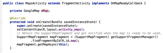 - Finds the Map fragment
