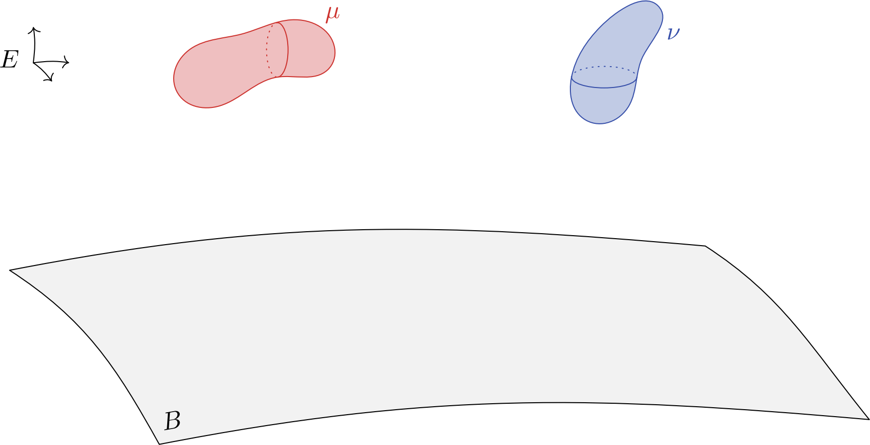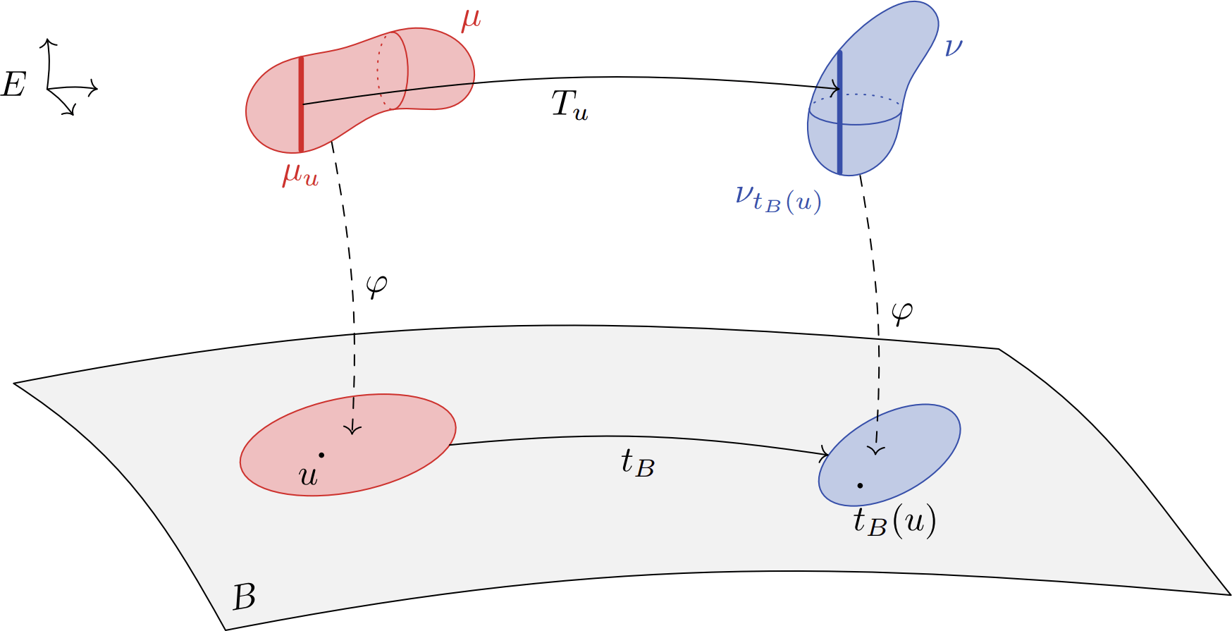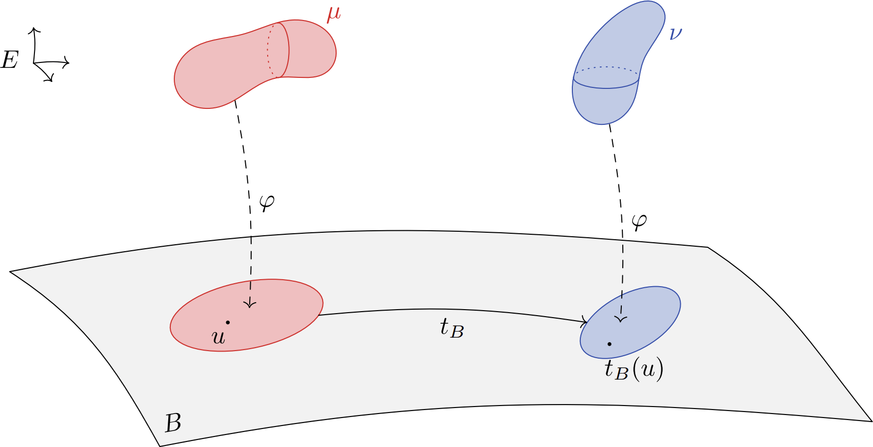"Let \(\mu,\nu\in\mathcal P(E)\). If we can send \(\mu\) and \(\nu\) in a space \(B\) by a map \(\varphi:E\to B\),