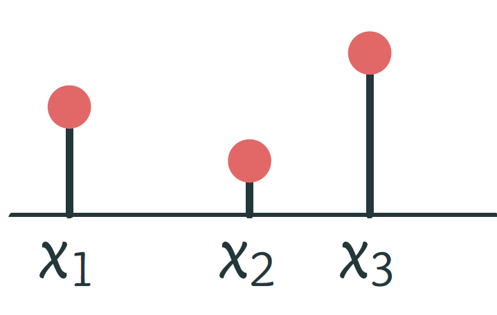 A discrete measure \(\mu=\sum_{i=1}^n a_i\delta_{x_i}\).