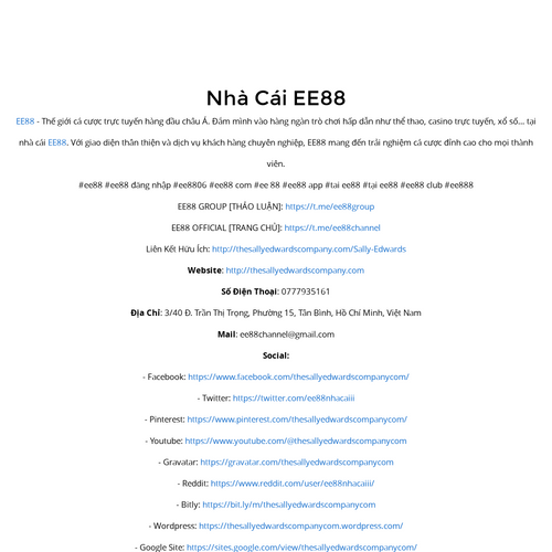 "EE88 - Thế giới cá cược trực tuyến hàng đầu châu Á. Đắm mình vào hàng ngàn trò chơi hấp dẫn như thể thao, casino trực tuyến, xổ số... tại nhà cái EE88. Website: http://thesallyedwardscompany.com