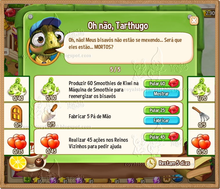 Moedas de Cobre: 3/5 - 4/5 - 5/5 Moeda Dourada: 5/5