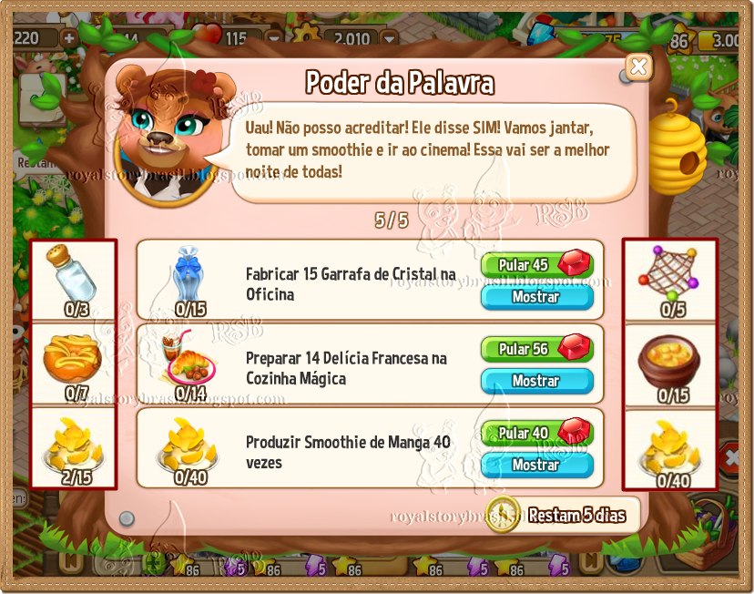 Moedas de Cobre: 3/5 - 4/5 - 5/5 Moeda Dourada: 5/5