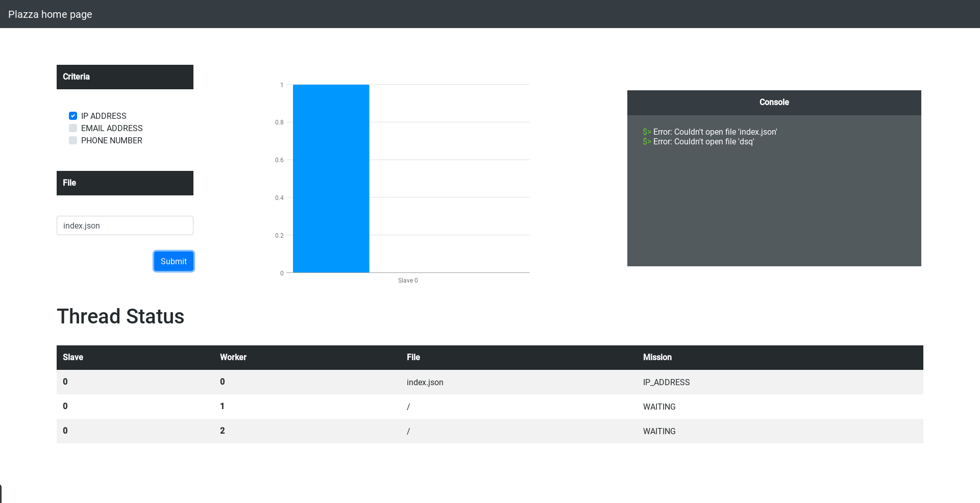 ➜ cpp_plazza git:(master) ✗ echo "file IP_ADDRESS" | ./plazza 3
