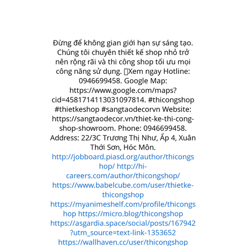 Website: https://sangtaodecor.vn/thiet-ke-thi-cong-shop-showroom. Đừng để không gian giới hạn sự sáng tạo. Chúng tôi chuyên thiết kế shop nhỏ trở nên rộng rãi và thi công shop tối ưu mọi công năng sử dụng. ✅Xem ngay Hotline: 0946699458. Google Map: