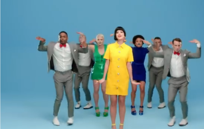 This music video is very appealing to the eye and displays the artist in a mixture of costumes. It highlights her as being quite a character and acting different people. Perhaps this is to suggest that anyone can be anyone and it doesn’t matter who you are, you can become who you want. The costumes change from her being in a dress to an older fashion outfit to a cartoon type outfit. This is interesting for the audience to watch and grabs their attention.