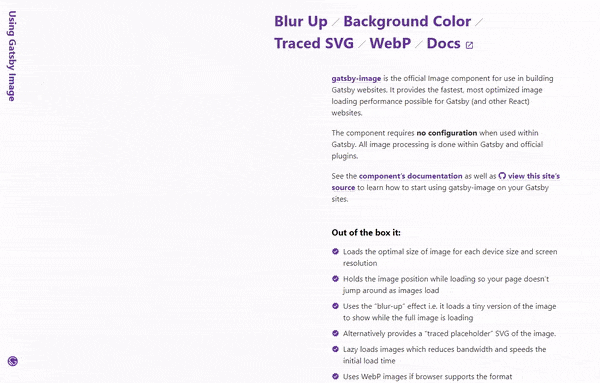 Demo from Gatsby for optimized performance with images. The “blur-up” technique is also used by Medium.