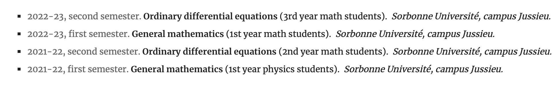 Enseignement (TD à Jussieu)