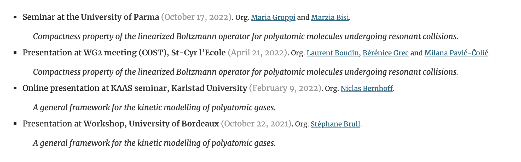 - Visite M. Bisi et M. Groppi à Parme (1 sem. octobre 2022)