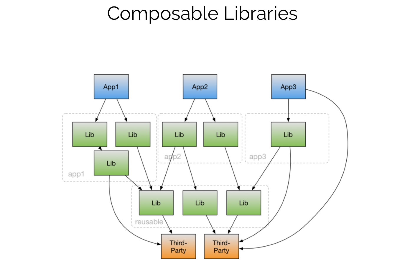 "... for any code changes, must re-deploy all apps"