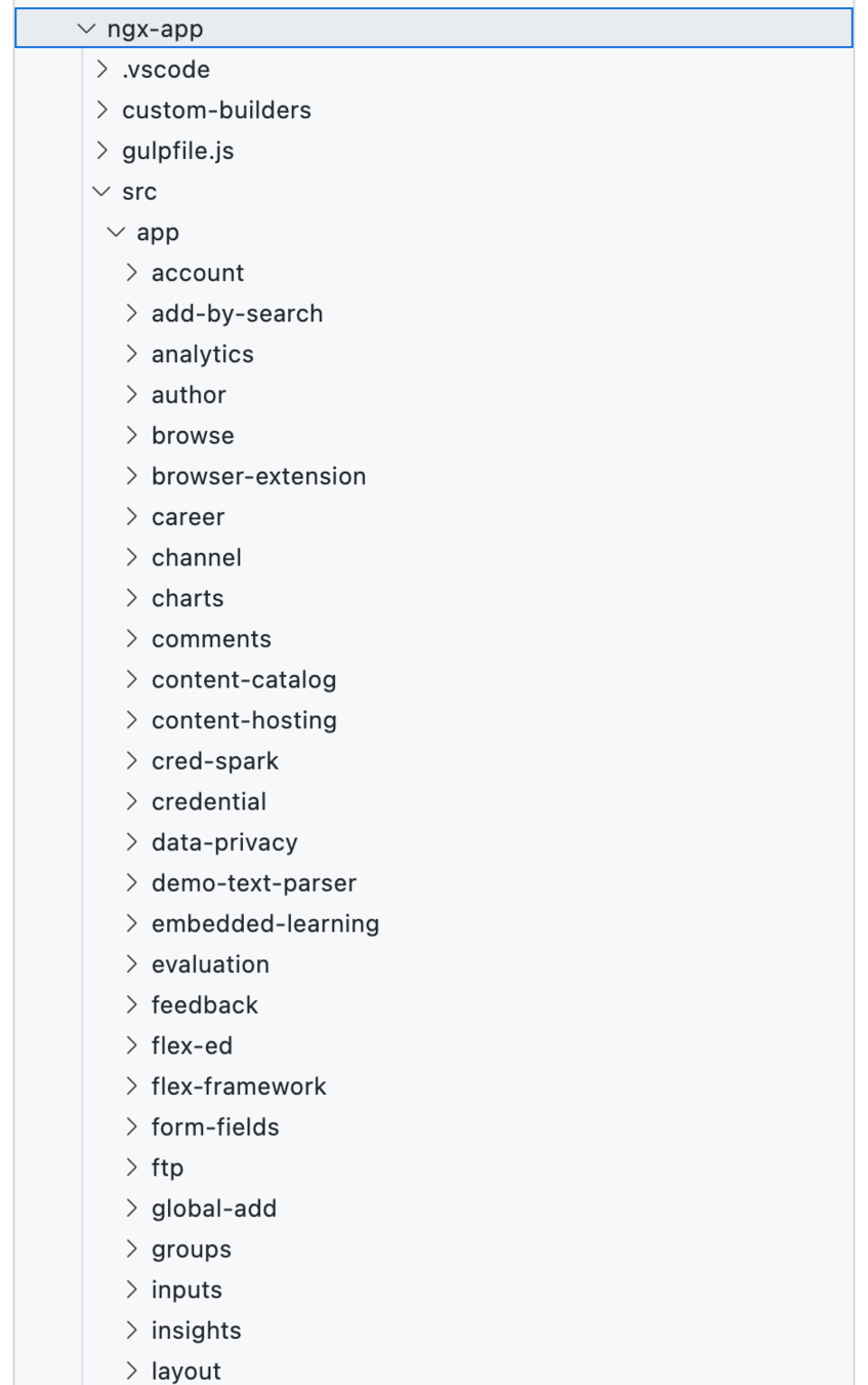Angular v11.x has a Monolithic code structure affects build times, testing, code sharing, reuse, and more.