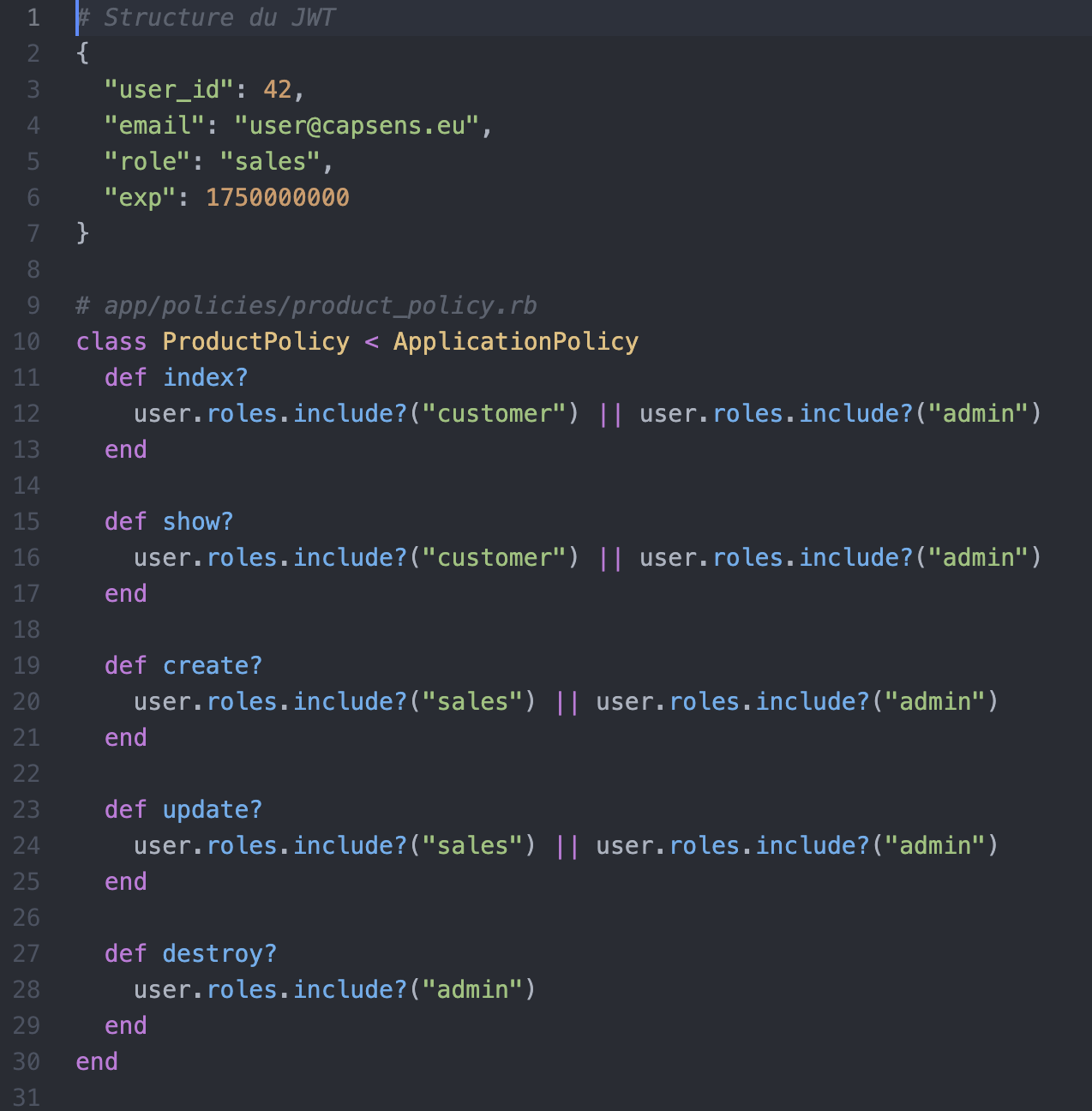 Rôles dans le JWT