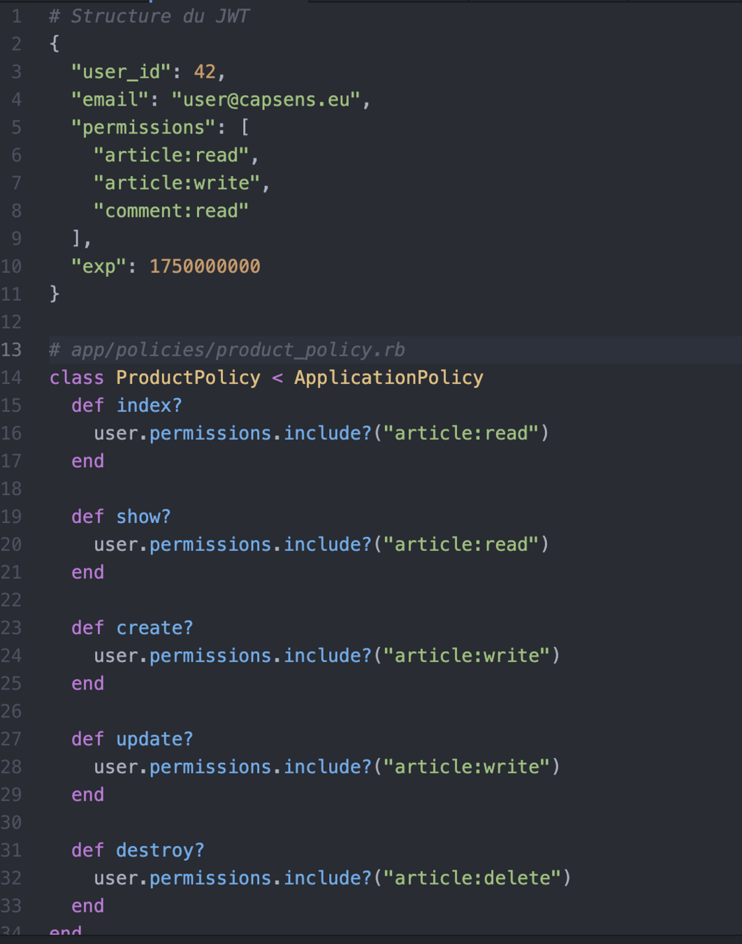 Permissions dans le JWT