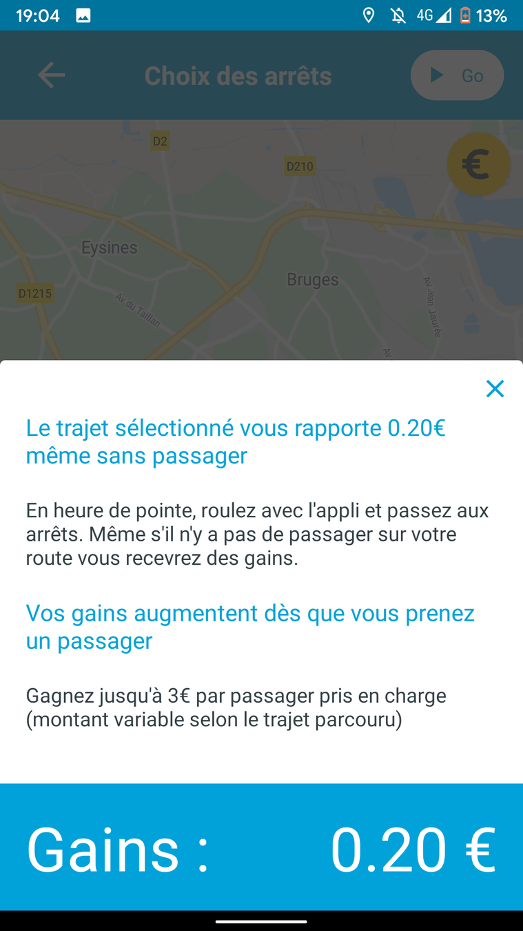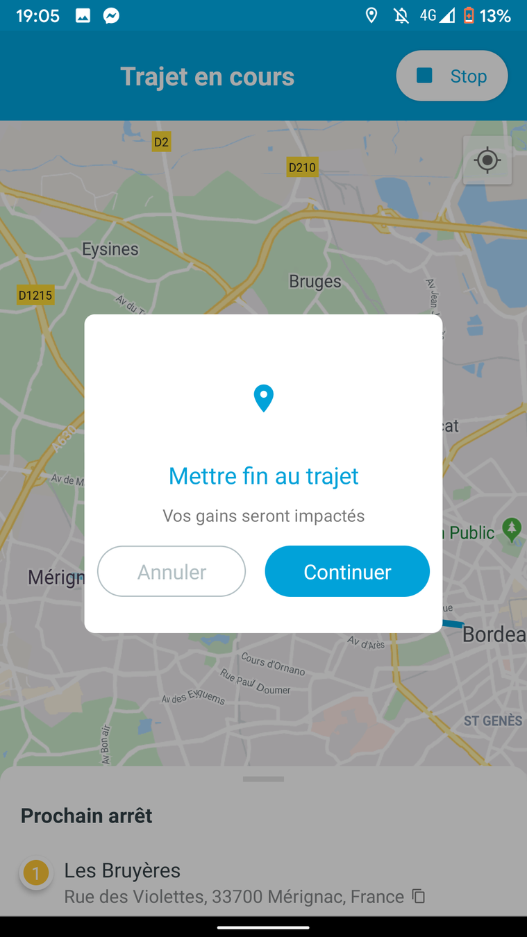 - -> Il y a un bug ici comme le trajet serait normalement "validé" à ce moment, et non plus "eligible"