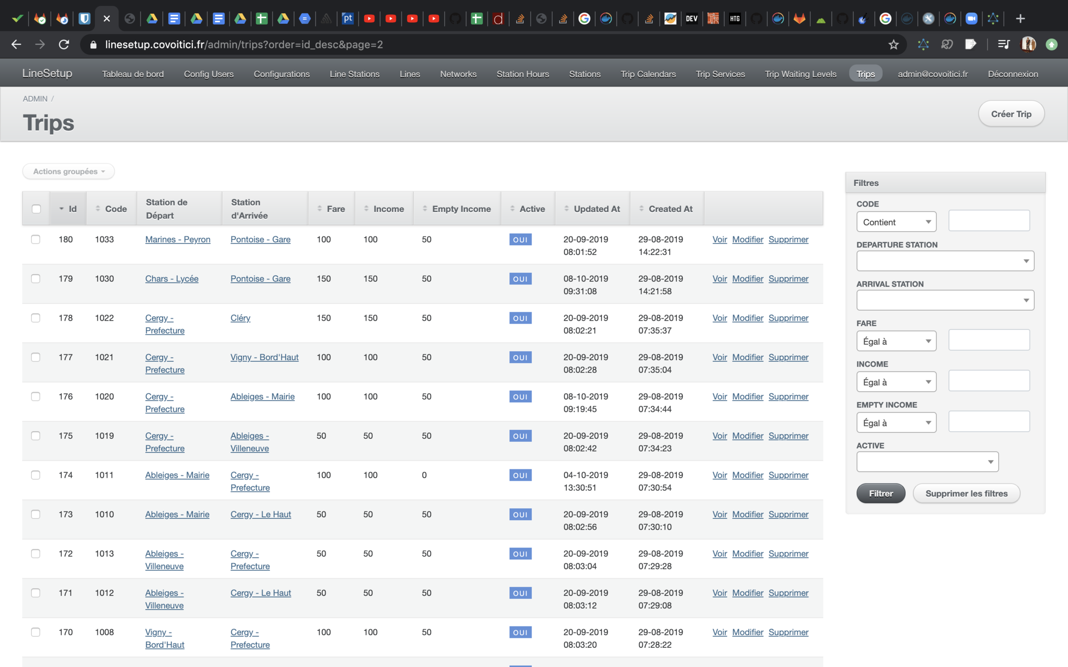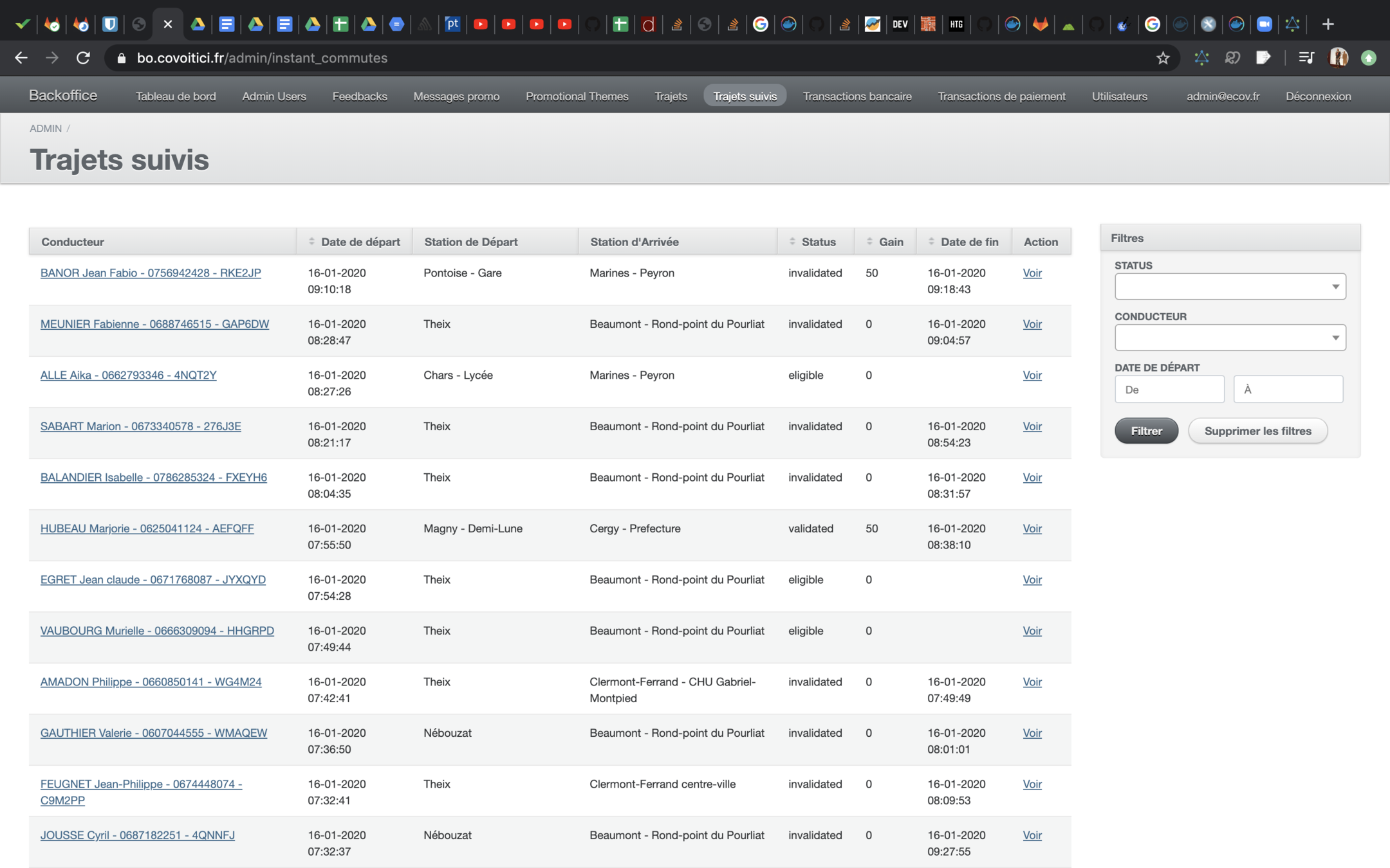 - Le conducteur est bien passé par chaque station où il a dit qu'il passerait (rayon d'entré configuré à 1000m)