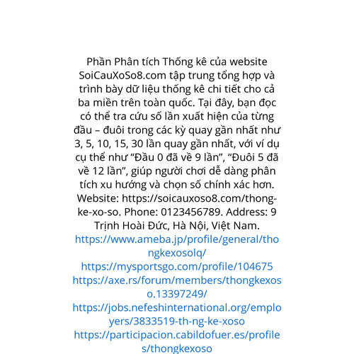 Website: https://soicauxoso8.com/thong-ke-xo-so. Phần Phân tích Thống kê của trang Soi Cầu Xổ Số 8 chuyên thu thập, xử lý và hiển thị dữ liệu thống kê chi tiết theo từng khu vực Miền Bắc – Miền Trung – Miền Nam. Tại đây, bạn đọc có thể theo dõi tần s
