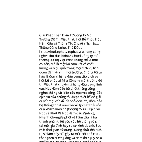 Website: https://maps.app.goo.gl/XayEQ6umMzQySqZh9https://maps.app.goo.gl/XayEQ6umMzQySqZh9 Giải Pháp Toàn Diện Từ Công Ty Môi Trường Đô Thị Việt Phát: Hút Bể Phốt, Hút Hầm Cầu và Thông Tắc Chuyên Nghiệp... Thông Cống Nghẹt Thủ Đức .. https://hutbephotvietphat.vn/thong-cong-nghet-thu-duc-
