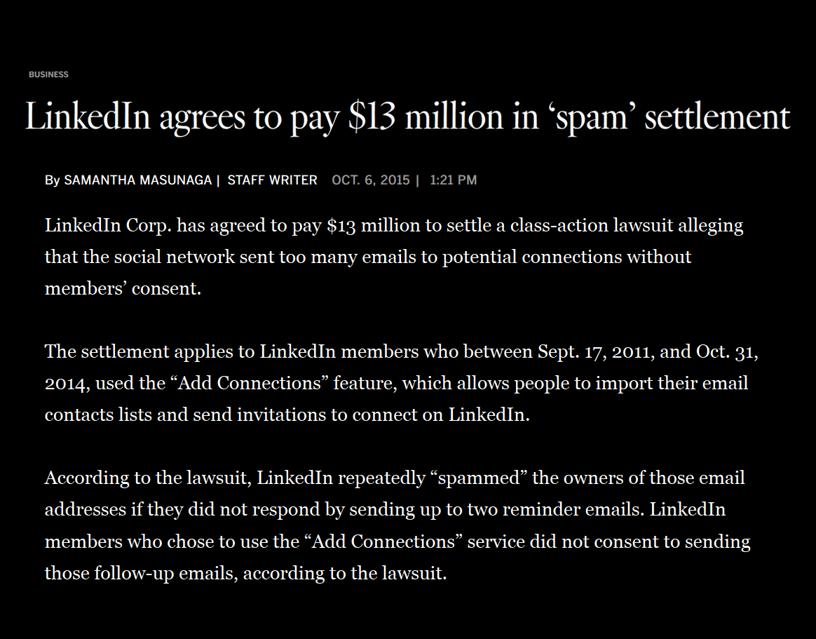 The product asks for your email or social media permissions under the pretence it will be used for a desirable outcome (e.g. finding friends), but then spams all your contacts in a message that claims to be from you.