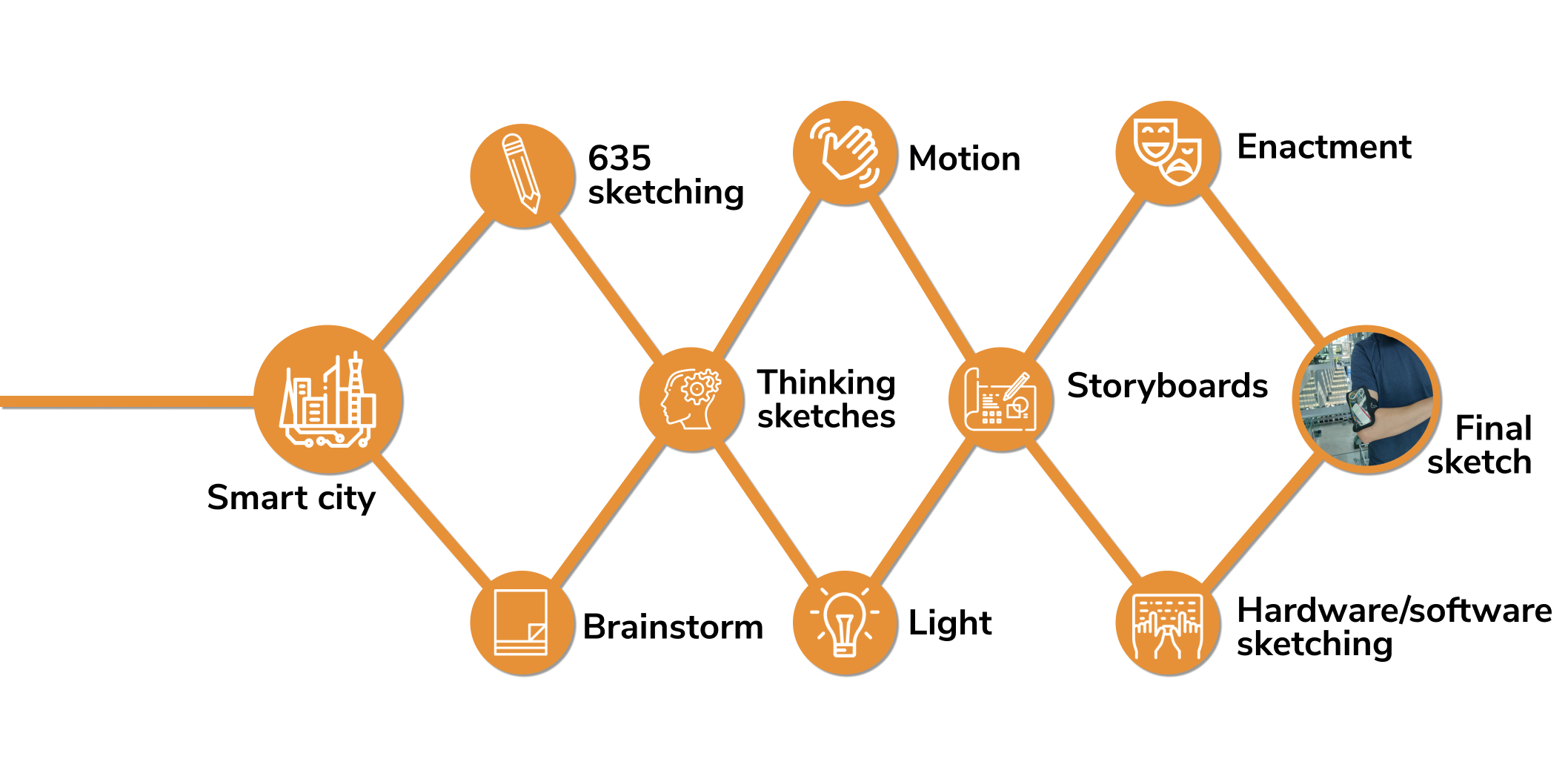 Vi har fulgt dele af designmodeller og forskellige sketchingmetoder til idégenerering