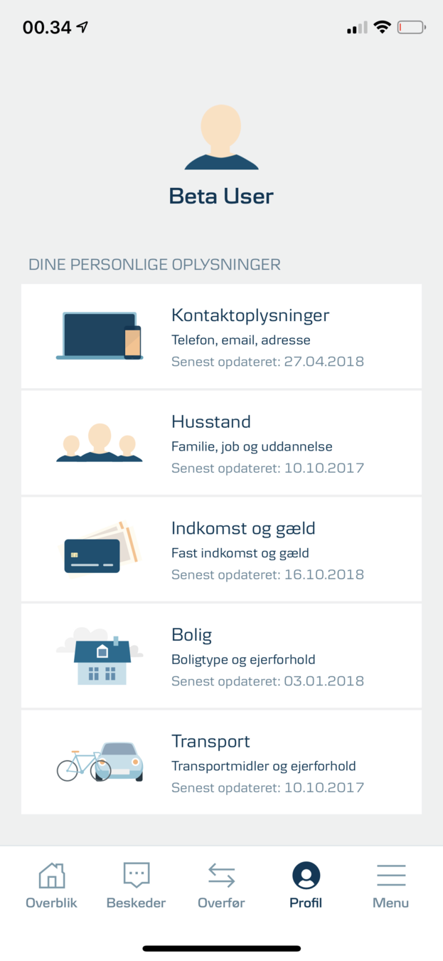 - Combined readout “Lønkonto 21.605,70 TIL rådighed 31.605,70. Button.