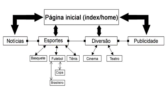 Representação gráfica da estrutura de um website, suas páginas e o caminho mais simples a ser percorrido pelo usuário para se chegar a cada “página” pretendida.