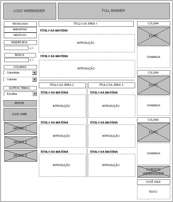 Um documento da Arquitetura de Informação que apresenta um guia visual básico para auxiliar na definição da estrutura de um site.