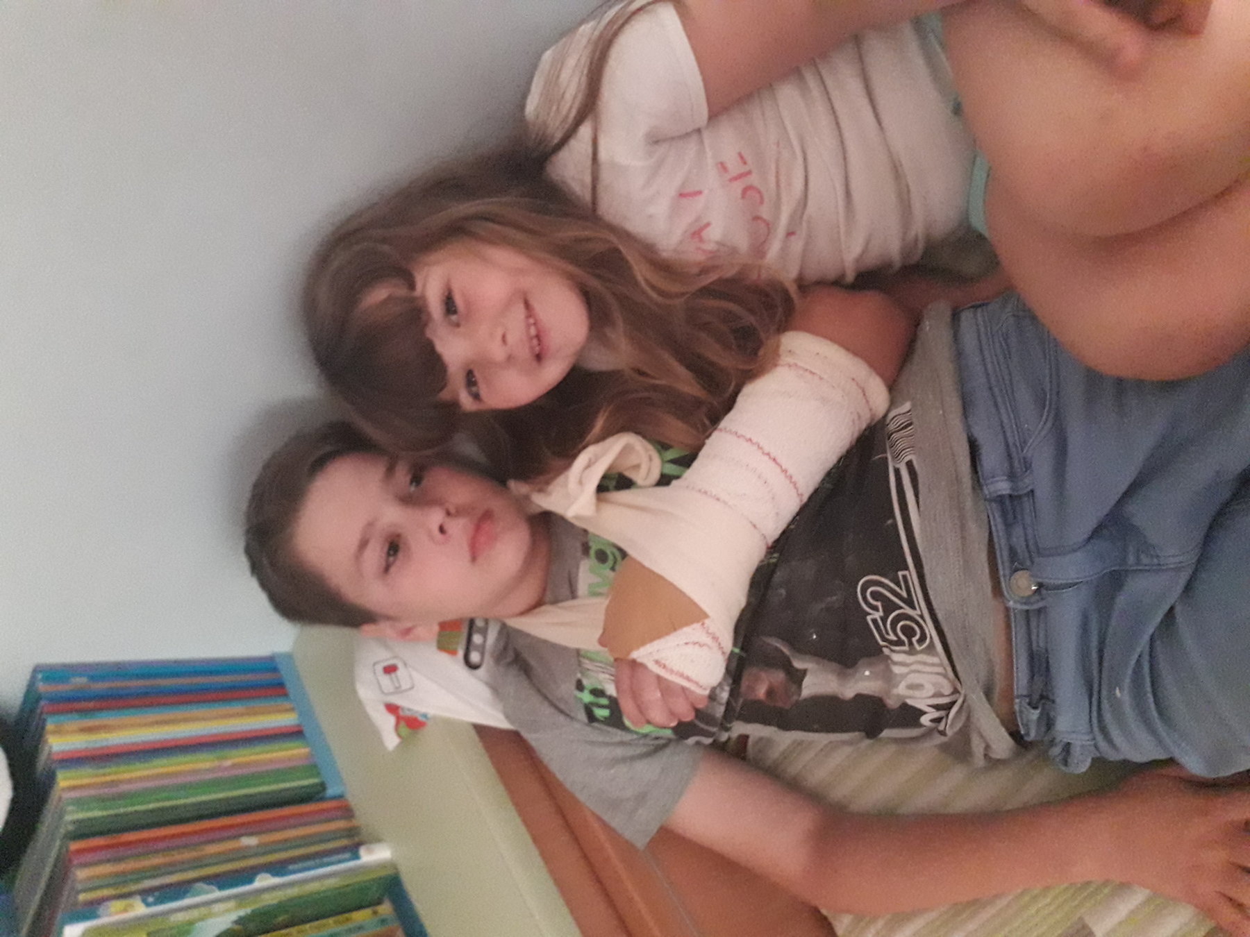 Je suis Tiago et j'ai aimé mes vacances, mais j’ai cassé un bras un peu après avoir terminé l'école, et pendant ce temps, je suis resté longtemps avec mes parents et ma soeur.